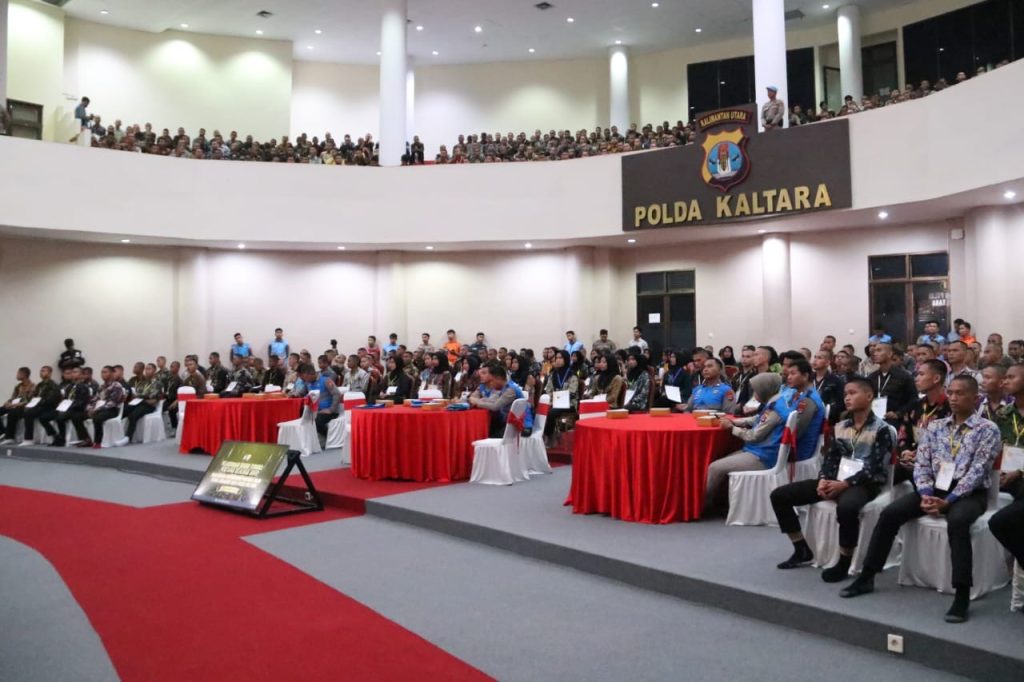 Tribratanews – Bulungan. Sebanyak 436 Casis Bintara dan Tamtama Polri TA. 2024 mengikuti kegiatan sidang terbuka penetapan kelulusan akhir penerimaan Bintara dan Tamtama Polri tahun anggaran 2024 yang dilaksanakan di Ruang Rupatama Kayan Gedung B, Mako Polda Kaltara. Jumat (05/07/24)