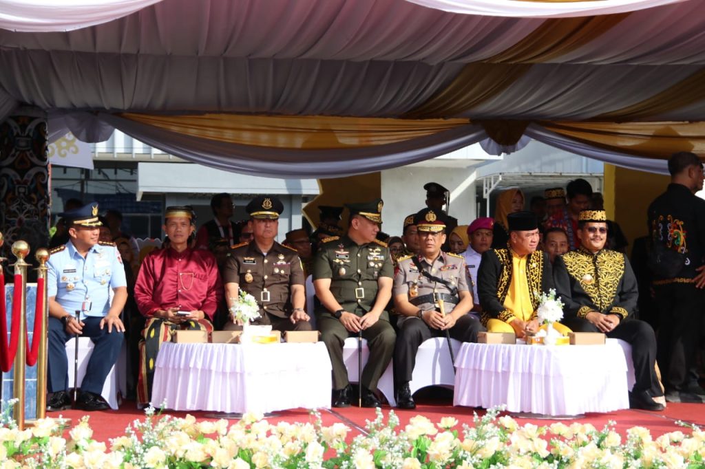 Dalam perayaan HUT Provinsi Kaltara tahun ini, tamu undangan dan peserta upacara mengenakan pakaian adat daerah sebagai simbol keberagaman.