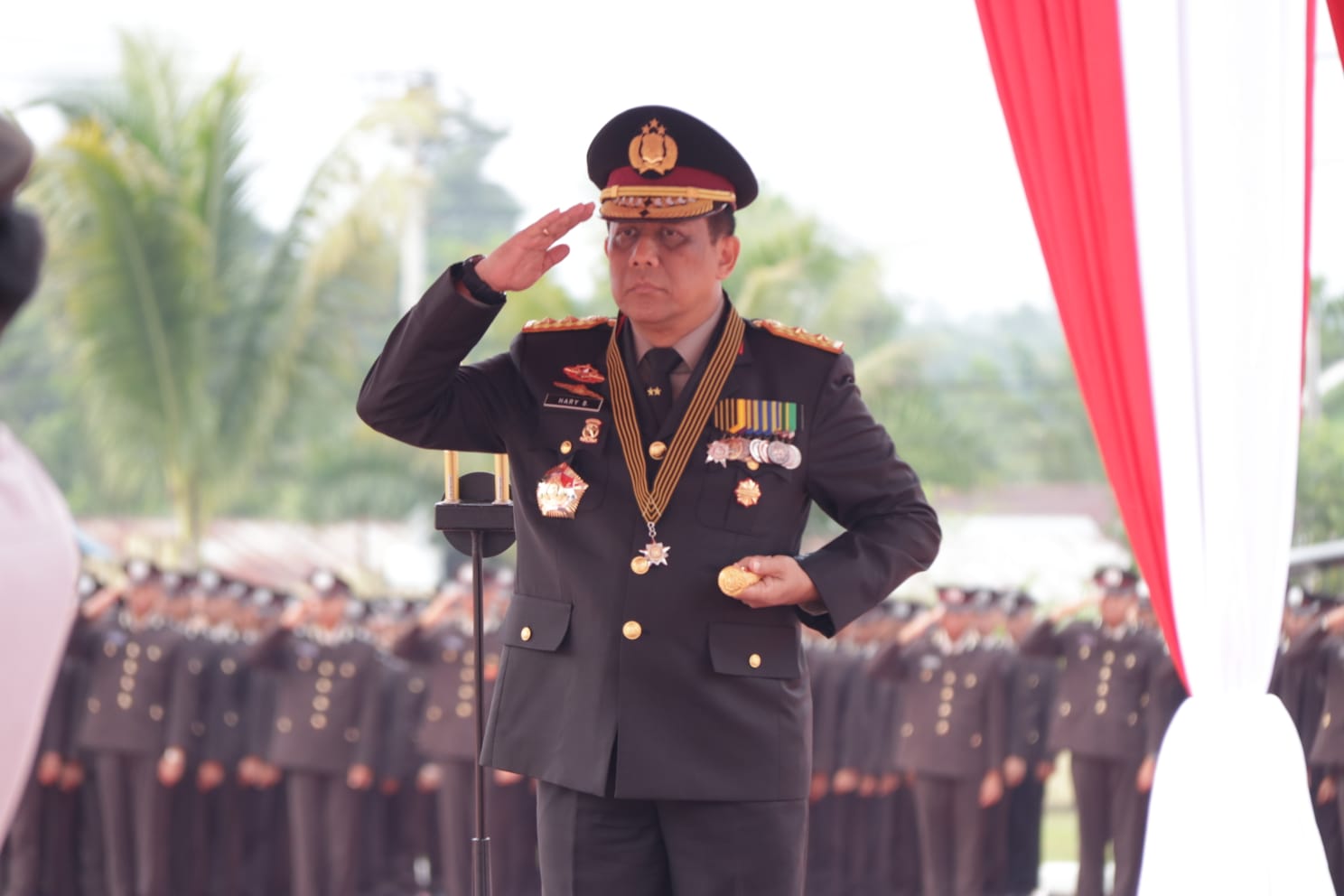 Kapolda Kalimantan Utara Irjen Pol. Hary Sudwijanto S.I.K., M.Si menjadi Inspektur Upacara pada Peringatan Hari Sumpah Pemuda di Lapangan Merah Polda Kaltara dengan diikuti oleh seluruh Personil Polda Kaltara, Senin (28/10/2024) Pukul 08.00 Wita.