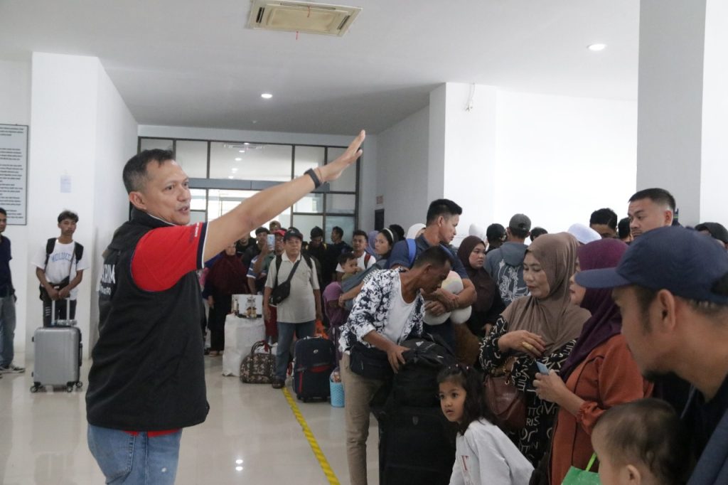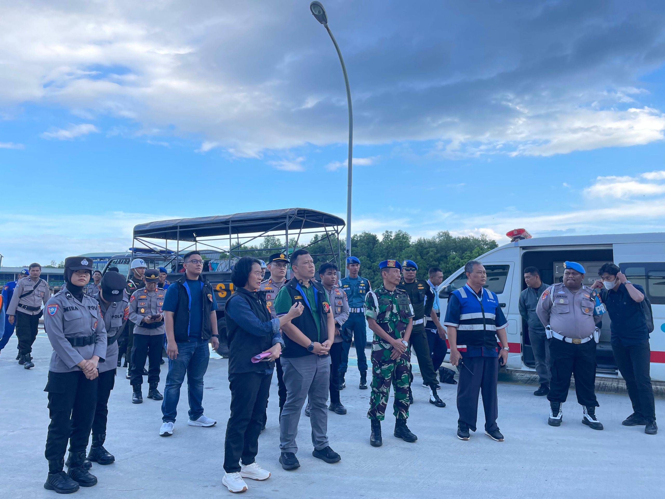 “Saat ini kita bersama-sama dengan aparat penegak hukum lainnya sedang melaksanakan pemeriksaan administrasi para penumpang yang turun dari kapal KM. Thalia sebanyak sekitar 400 penumpang dan KM. Bukit Siguntang dengan sebanyak sekitar 800 penumpang” Ucap Brigjen Pol Nurul Azizah.