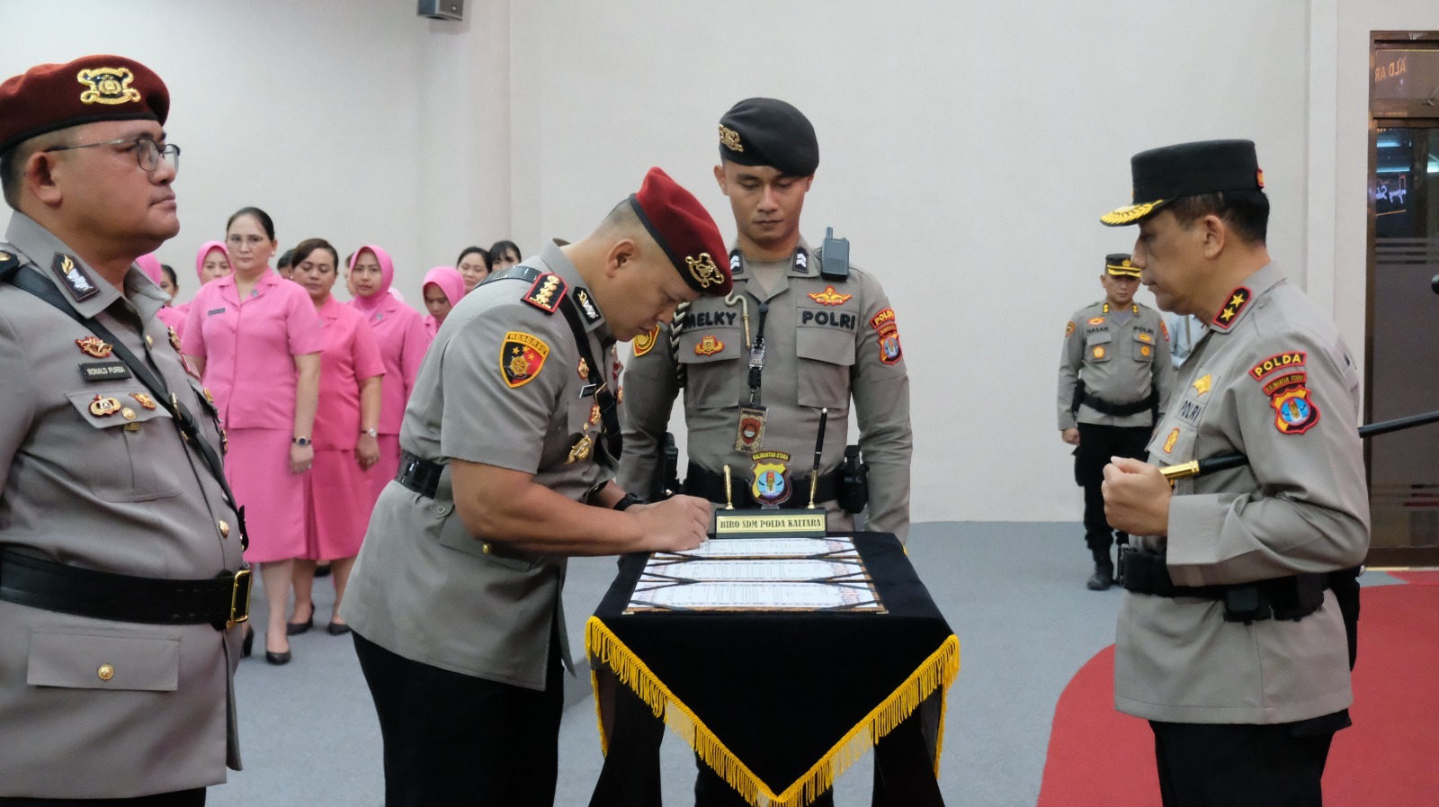Dalam sertijab tersebut, Kombes Pol Ronald Ardiyanto Purba, S.I.K., M.Si., yang sebelumnya menjabat sebagai Dirreskrimsus Polda Kaltara, kini secara resmi memberikan tongkat estafet kepemimpinan Ditreskrimsus kepada Kombes Pol Dadan Wahyudi, S.I.K., S.H., M.Crim., selaku pejabat baru. Upacara ini ditandai dengan pengambilan sumpah jabatan, dilanjutkan dengan penandatanganan berita acara dan pakta integritas. Simbolisasi tersebut mencerminkan komitmen penuh dan tanggung jawab tinggi kepada institusi Polri khususnya Polda Kaltara, serta sebagai bukti integritas dalam melaksanakan tugas Kepolisian demi menjaga Kamtibmas di wilayah hukum Kalimantan Utara.