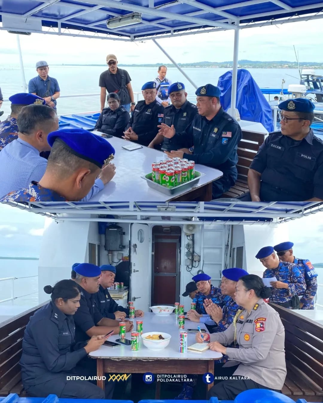 Delegasi dari Ditpolairud Polda Kaltara dipimpin langsung oleh Dirpolairud Polda Kaltara, Kombes Pol Tidar Wulung Dahono, S.H., S.I.K., M.H. Kehadiran beliau menunjukkan keseriusan pihak Indonesia dalam pertemuan ini. Sementara itu, Pasukan Polis Marin Wilayah 4 Sabah diwakili oleh SUPT. Jeffri bin Bidin – Timbalan Komander PPM W4, yang juga membawa semangat kolaborasi dari pihak Malaysia.