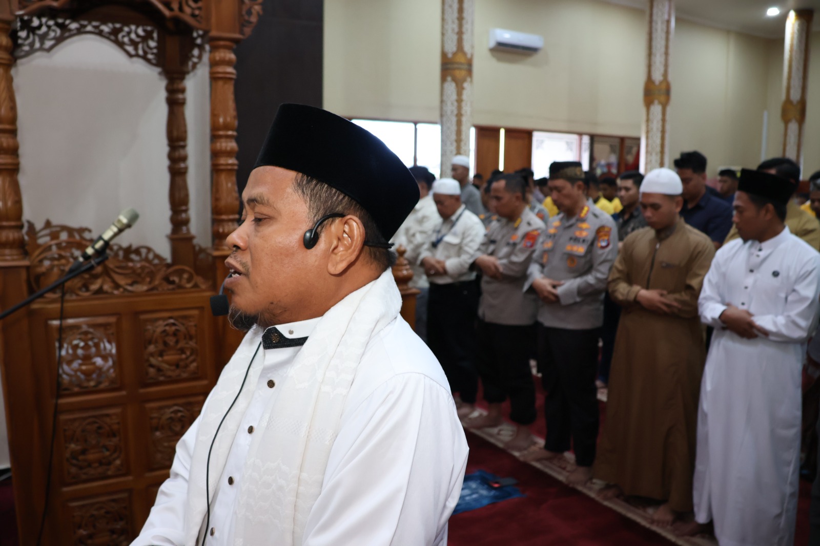 Shalat berjamaah dipimpin oleh Ustad Imam Hanafi dan dihadiri sejumlah pejabat utama Polda Kaltara, di antaranya Dirreskrimsus Polda Kaltara Kombes Pol Dadan Wahyudi, S.I.K., S.H., M.Crim., Dirbinmas Polda Kaltara Kombes Pol. Tri Handako Wijaya Putra, S.I.K,. Kabid Humas Polda Kaltara Kombes Pol. Budi Rachmat, S.I.K., M.Si., Kabidkeu Polda Kaltara Kombes Pol Muh Nurhidayat, S.E., dan personel Polda Kaltara.