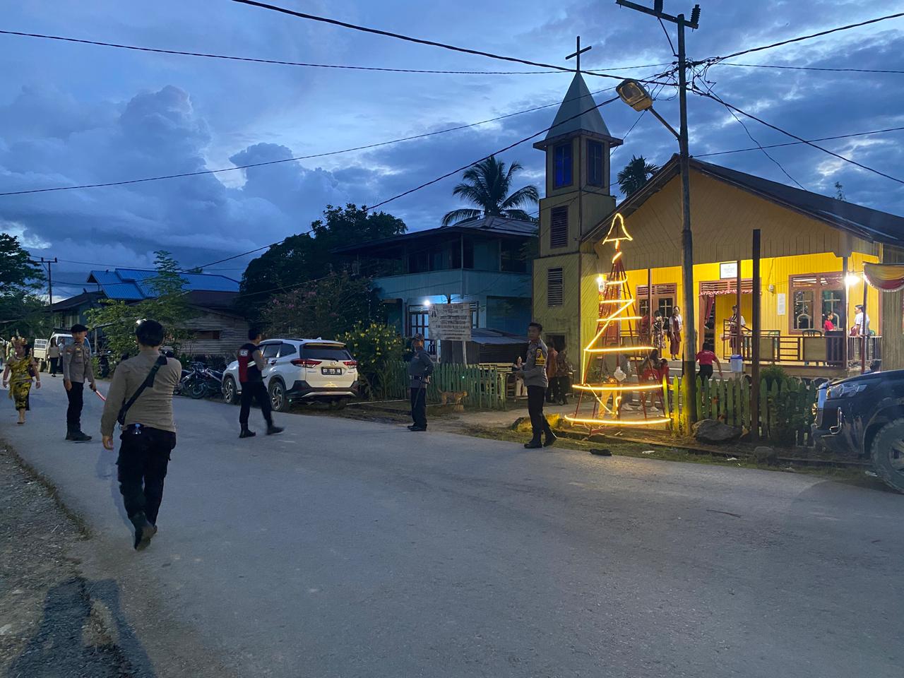 TANJUNG SELOR – Personel Polresta Bulungan melaksanakan pengamanan ibadah Natal sekaligus mendukung kegiatan Safari Natal Pemerintah Kabupaten Bulungan bersama LPPD Kabupaten Bulungan yang berlangsung di Gereja Toraja Jemaat Sion Tanjung Selor CK Bukit Hermon Long Beluah, Selasa (09/12/2025).