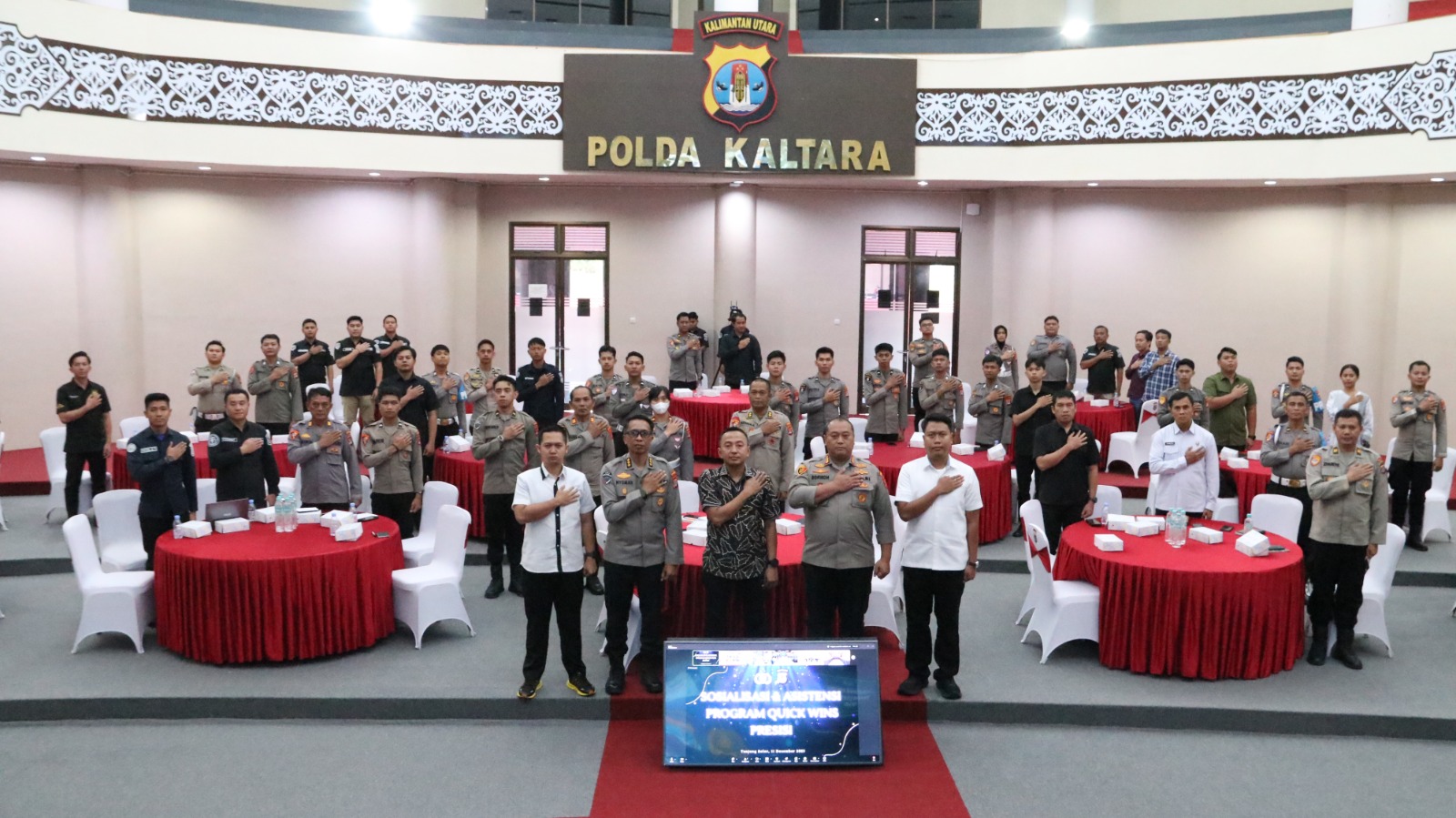 Tim Posko Presisi Mabes Polri yang dipimpin oleh Kabag Duknis Rotekinfo Div TIK, Kombes Pol. Dr. Hariwiyawan Harun, S.I.K., M.I.K beserta rombongan melaksanakan kegiatan Sosialisasi dan Asistensi Quick Wins Presisi. Acara ini berlangsung di Ruang Rupatama Bhara Daksa Polda Kaltara pada hari Kamis (11/12/2025).