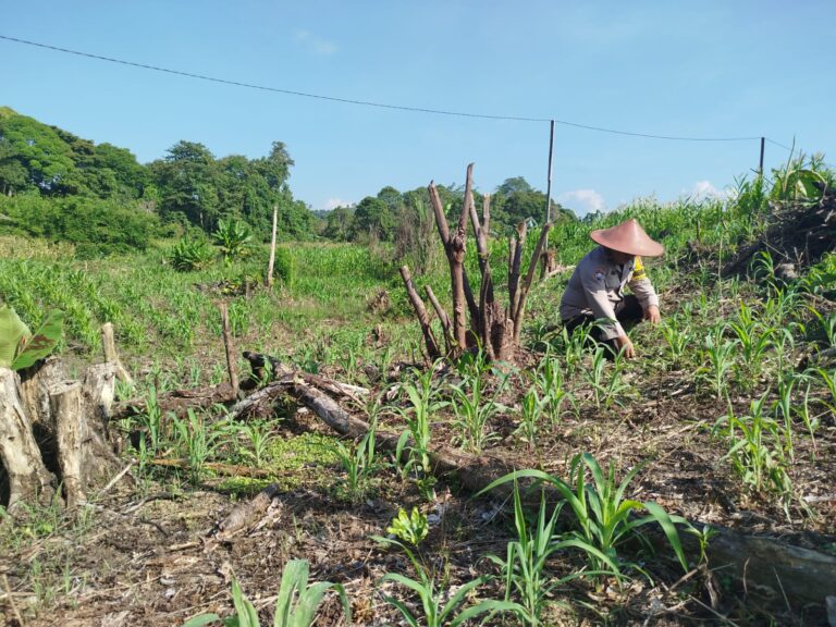 Dalam rangka mendukung program ketahanan pangan, personel Bhabinkamtibmas Polsek Malinau Kota, Aiptu Ardian, melaksanakan kegiatan monitoring, pemeliharaan, dan perawatan tanaman jagung pada masa tanam Kuartal I bulan Februari 2026. Senin, (27/04).