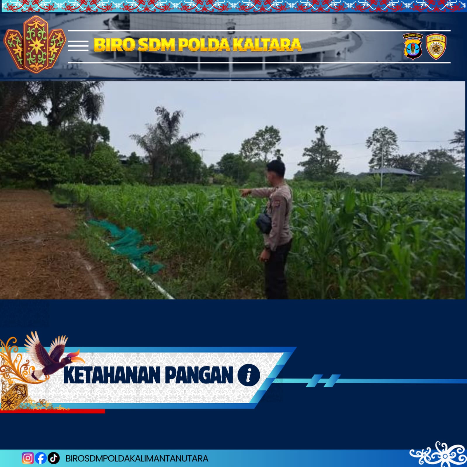 TRIBRATANews, Bulungan – Polsek Tanjung Palas Timur melaksanakan kegiatan pemantauan dan pendampingan ketahanan pangan dengan meninjau langsung lahan pertanian jagung milik warga. Dalam kegiatan tersebut, personel Polsek memberikan motivasi serta dukungan kepada para petani agar terus meningkatkan hasil produksi dan menjaga kualitas tanaman. Selasa (28/04/2026).
